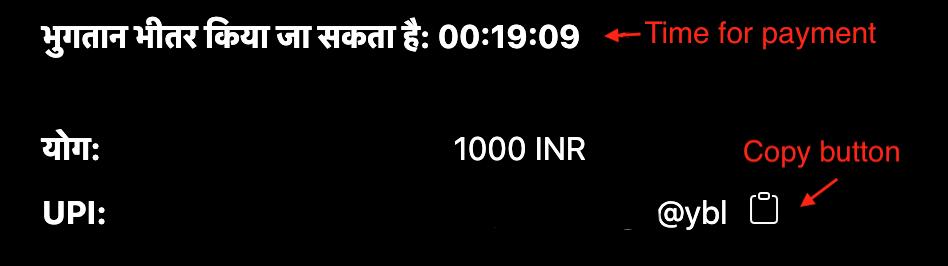 6. Depending on the method selected, you will receive the UPI or IMPS details: