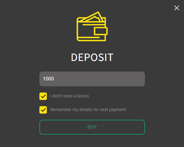 1. To add funds through this method, you first need to log in to the site and select "deposit":